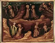 - Martyre des Dix Mille. 52,2 × 67 cm, toile. Cologne, Wallraf-Richartz-Museum, WRM 52. Les deux tableaux faisaient partie d'un panneau plus grand : le Martyre en constituait la partie supérieure gauche, les Scènes de saint Antoine la partie supérieure droite[7] d'où il résulte une largeur totale, bordure comprise, d'au moins 136,4 cm.