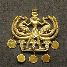 Le motif s'est également vu attribuer l'emplacement le plus élevé du célèbre couteau Gebel el-Arak au Louvre, un couteau en ivoire et silex datant de la période Nagada II de la préhistoire égyptienne, qui a débuté vers 3450 av. J.-C. On y voit un personnage en costume mésopotamien, souvent interprété comme un dieu, aux prises avec deux lions. On a établi un lien avec le célèbre sceau Pashupati de la civilisation de la vallée de l'Indus (2500-1500 av. J.-C.) qui montre un personnage assis dans une posture semblable à celle du yoga, avec une coiffe à cornes (ou des cornes) et entouré d'animaux[11].