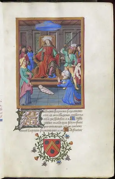 - Flosculus Proverbiorum Solomonis, une miniature de frontispice, destiné à Guillaume Lallemant, vers 1493, Bibliothèque de l'Université de Princeton, Garrett 31