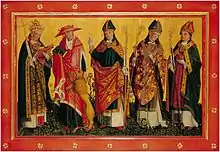 - Saint Nicolas et les Pères de l'Église, de l'église du monastère de Marienthal-Niesing (de) de Münster, conservé au musée LWL d'art et de culture (de) à Münster[7].