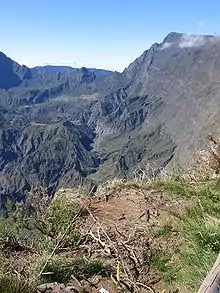 L'écaille du Maïdo domine le cirque de Mafate. | ||