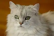 Le gène repousse l’eumélanine responsable des bandes noires sur le poil agouti tout au bout du poil. Cela donne l’impression que la fourrure est légèrement argentée et le ticked s'appelle alors tipped (ou shell). Cette robe se voit surtout sur le persan chinchilla et la truffe couleur brique montre qu’il s’agit bien d’un chat tabby[5].