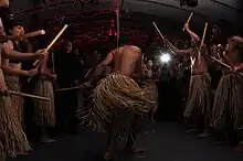 Cette danse s'effectue avec des bâtons en bois, chaque capoeiriste en tenant un dans chaque main, et constitue plus une expression corporelle libre qu'une danse avec une chorégraphie précise.