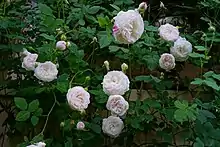 Rose 'Madame Plantier' éclose avec un bouton en plus en son cœur. | |