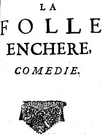 - La Folle Enchère, Comédie-Française, du 30 mai au 16 juin 1690, reprise les 14 et 16 janvier 1691, le 14 novembre 1691 à la Cour.