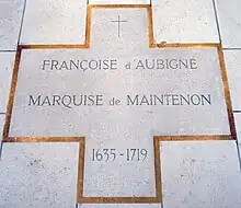 Madame de Maintenon est d'abord enterrée dans l'allée centrale de la chapelle de la Maison Royale de Saint-Louis, maison où elle finit sa vie, où elle dit en y venant pour la première fois : « Ce qui me fait plaisir, c'est que je vois ici ma retraite et mon tombeau ».