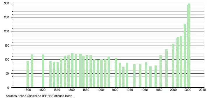 (Sources : Ldh/EHESS/Cassini jusqu'en 1999[27] puis Insee à partir de 2006[28].)