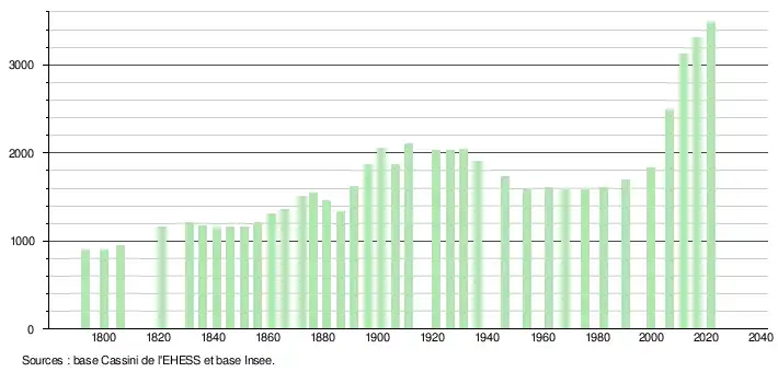Au dernier recensement, la commune comptait 3 478 habitants.