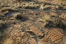 La « séquence du Transvaal » débute il y a environ 2 300 Ma[27]. L'apparition d'algues primitives couplée à la salinité de l'eau entraîne un second dépôt carbonaté composé de dolomie dans les endroits où la mer est la plus profonde et où les dépôts organiques sont nombreux et de chaille là où des précipitations d'eau douce réduisent la concentration en silice[27],[25]. Ces deux roches sont réunies dans la « dolomie Malmani »[27]. Les algues à l'origine du dépôt carbonaté se retrouvent fossilisées dans la dolomie : cela forme des stromatolithes. La taille de ces fossiles est variable puisqu'on en trouve des échantillons de quelques centimètres à des roches de plusieurs mètres de diamètre[28]. L'eau s'infiltre dans les grandes cavités que laissent la chaille et la dolomie une fois qu'elles se sont solidifiées. La mer s'assèche peu à peu et, avec l'augmentation de la température, le sable se cristallise et conserve ainsi les rides créées par les vagues[29].