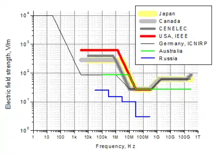 Les normes actuelles de sécurité électromagnétique, élaborées par diverses institutions nationales à partir des travaux de l'ICNIRP, diffèrent de dizaines et de centaines de fois selon les pays pour certaines gammes de champs électromagnétiques ; cette situation reflète un manque de recherche dans le domaine de la magnétobiologie et de l'électromagnétobiologie et une difficulté à faire consensus au moment où l'industrie des communications sans fil souhaite développer la 5G. À ce jour, via l'ICNIRP, la plupart des normes ne prennent en compte que les effets biologiques thermiques induits par les champs électromagnétiques de type micro-ondes et la stimulation des nerfs périphériques par un courant induit.