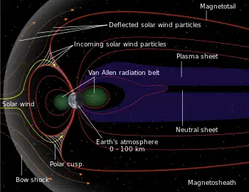 La magnétogaine de la Terre occupe typiquement la région de l’espace située à environ 10 rayons terrestres du côté de la Terre qui fait face au vent solaire (côté faisant face au Soleil) et s’étend considérablement plus loin du côté opposé au vent solaire en raison de la pression du vent solaire. L'emplacement et la largeur exacts de la magnétogaine dépendent de variables telles que l'activité solaire.