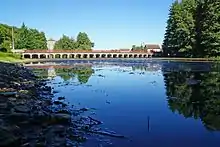 La ferme-moulin fondatrice de Magny-Vernois, l'église, le monument aux morts ainsi qui le centre ville et la place de loisir à côté du pont.