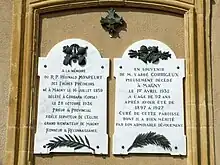 Plaques commémoratives sur la façade de l'église Saint-Martin - Le révérend-père Réginald Monpeurt : né à Magny le 16 juillet 1859 et mort à Corbara le 28 octobre 1936. Prieur et provincial, membre des Frères Prêcheurs.