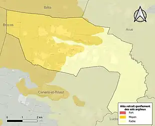 Les communes limitrophes sont Arue, Bélis, Brocas, Canenx-et-Réaut, Lucbardez-et-Bargues et Pouydesseaux.