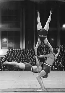Le main à main est une forme de la gymnastique et également un art du cirque qui se pratique le plus souvent à deux.