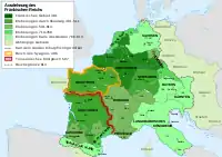 Après la division franconienne de l'empire en 561, la noblesse prend le pouvoir et met le royaume entre ses mains. De vastes défrichements ont eu lieu dans le Maingau à cette époque. De nouvelles fondations dans la zone défrichée ont reçu des noms personnels en rapport avec les terminaisons -bach, -tal, -hofen et -feld, au Maingau, il y a :