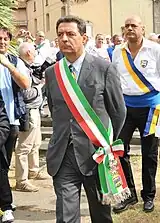 L'art. 50 du D. Lgs. n. 267/2000 décrit l'insigne traditionnel du maire : « l'écharpe tricolore avec l'écu de la République et l'écu de la Commune doit être portée en bandoulière ». L'écharpe doit être portée sur l'épaule droite, avec la bande verte tournée vers le cou.