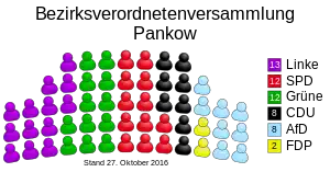 L'histoire politique de Pankow est marquée par une orientation à gauche. Même après la fin du parti unique de la RDA à la Réunification, le pouvoir a été tenu par les sociaux démocrates, et dernièrement par le parti de gauche antilibéral.