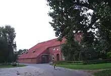 Maison à Gulf en brique à Ziallerns dans le Wangerland. Partie exploitation à l’arrière montrant la porte de grange et de l’étable