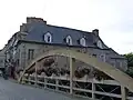 Vieille maison en granit appareillé, avec cadres aux ouvertures du premier et fers forgés sur pierres légèrement avancées aux balcons. Trois lucarnes tombent sur les trumeaux. La façade côté rivière est longée d'un large balcon. Sur cette orientation, des moellons remplissent les trumeaux, allèges et dessus des ouvertures. La toiture est prolongée par une panne faîtière[1].