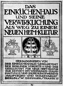 En 1907 est fondée à Berlin la Zentralstelle für Einküchenhäuser G.m.b.H. (Centrale pour les maisons à cuisine unique, SARL), dont se sépare l'année suivante la Einküchenhaus-Gesellschaft der Berliner Vororte m.b.H. (EKBV - Société des maisons à cuisine unique de la banlieue de Berlin, SARL). Leurs programme est de promouvoir l'édification de systèmes centraux d'économie domestique. À cette fin, la société édite en 1908 une brochure sous le titre Das Einküchenhaus und seine Verwirklichung als Weg zu einer neuen Heimkultur (La maison à cuisine unique et sa réalisation, voie d'une nouvelle culture de l'habitat). Elle y montre que ce type de bâtiments rend possible aux locataires un nouveau style d'habitat, et devrait dissiper les conflits sociaux. On se réfère explicitement au débat sur les idées de Lily Braun, mais on n'évoque pas les tentatives de coopératives contemporaines. La technicisation et la centralisation des ménages économiquement arriérés ne peuvent être réalisées que sous la forme d'une organisation formellement capitaliste. La société fait valoir des calculs selon lesquels la vie en maisons à cuisine unique ne serait pas plus onéreuse que celle dans un immeuble locatif normal, « sans compter les grandes valeurs idéales que l'on y gagne. » On y cite« principalement les participants aux soi-disant professions libérales, qui aspirent à sortir de l'inculture du logement et de la calamité de la domesticité, ou chez lesquels la femme veut se libérer pour une vie professionnelle propre, surtout dans le champ intellectuel ou artistique[38]. » Parmi les plans de construction de la société, il est aussi prévu une extension aux milieux de travailleurs. Pour cela, on recherche pour le système d'économie centralisée une production indépendante de vivres et de biens agricoles qui pourrait être rattachée aux maisons à cuisine unique par un mécanisme de trust.
