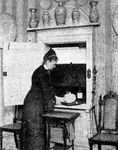 « Entre midi et 2 heures, il y a certainement 20 millions d'Américains et autant d'Anglais qui mangent du sauté de bœuf ou de mouton, de la viande de porc, des pommes de terre et des légumes. Et 8 millions de poêles brûlent pendant 2 à 3 heures pour sauter toute cette viande et cuire ces légumes, 8 millions de femmes passent leur temps à préparer les repas, qui dans leur ensemble consistent seulement de 10 plats différents. […] Libérer la femme ne signifie pas seulement lui ouvrir les portes de l'Université, du tribunal ou du Parlement. […] Libérer la femme signifie bien plus la libérer du travail brutal à la cuisinière et à l'évier, cela signifie de trouver des installations qui lui permettent d'élever ses enfants, quand elle le veut, et de prendre part à la vie sociale. »