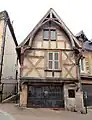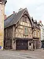 Maison du XVe siècle avec façade à pans de bois, avec fermes apparents et saillants au devant du pignon[1].