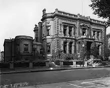| Entre 1900 et 1903 | Remplacement du mur d’enceinte à l’avant par une clôture en fer forgé[note 5] | ||
