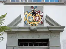 L’édifice est construit en 1665 par l’apothicaire Damian Müller ab Lauried à l’angle de la place Kolin, puis complété en 1689[1]. Sur la façade nord, la porte d’entrée monumentale comporte un linteau dont le millésime 1689 est encadré du monogramme christique IHS et des lettres MARIA, renvoyant à Marie. Au-dessus, dans un fronton brisé, figurent les armoiries Lauried-Müller et Widmer, richement ornementées[2].