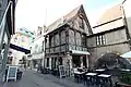 Maison de la fin du XVe siècle avec ossature en pans de bois et façade sculptée. Au-dessus du rez-de-chaussée, deux étages sont posés en léger encorbellement. Au-dessus d'une sablière moulurée d'un cordon saillant, le premier étage est divisé en six panneaux, dont les trois supérieurs ont une hauteur double de ceux du bas, dont ils sont séparés par une entretoise horizontale formant l'appui de la fenêtre ouverte dans la partie centrale. Chacun des trois panneaux du bas a une ossature de bois en croix de saint-André. Deux croix de saint-André superposées forment l'ossature des deux panneaux supérieurs de chaque côté de la fenêtre. Les deux poteaux corniers sont décorés de petits pilastres cubiques terminés dans le haut et dans le bas par des moulures prismatiques, et chargés en leur milieu de pinacles aigus à crochets. Ils sont surmontés de dés cubiques où font saillie des moulures prismatiques formant culots qui reçoivent les moulures de la sablière de l'étage supérieur en encorbellement. Ces moulures, formées de deux listels séparés par une gorge, décrivent, au-dessus de la fenêtre et des panneaux, des linteaux arrondis à leurs extrémités. Le second étage présente le même décor et la même disposition que le premier[1].