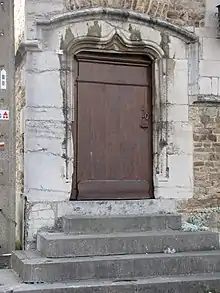 Alliant les styles gothique et Renaissance, la façade atypique de cette demeure comporte deux niveaux et cinq travées. Elle est bâtie en grès brunâtre d'Ardenne pour le rez-de-chaussée (réalisée au XVIe siècle) et en pierre de schiste verdâtre pour la partie supérieure de l'étage (en 1616). Une rangée de vingt-six corbeaux en pierres calcaires moulurées horizontalement délimite le rez-de-chaussée et l'étage. Des pierres de taille sont utilisées pour les différents encadrements des baies placées d'une manière disparate. La façade principale possède deux portes d'entrée sous linteaux en accolade. La porte d'entrée principale située à l'extrémité gauche de la façade est précédée par quatre marches en pierre calcaire[3].