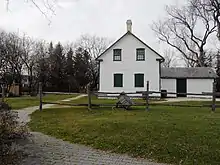 C'est en 1844 que Louis Riel père et Julie Lagimodière se marient à Saint-Boniface. Leur fils Louis Riel naît l'année même dans la ferme familiale à la confluence de la Seine et de la Rouge. Vers 1850, la famille déménage à Saint-Vital[3]. Le lot de la propriété a été donné par Mgr Alexandre-Antonin Taché à Julie Lagimodière-Riel en 1864, peu après le décès de son mari. Julie et ses enfants habitent à l'origine une maison au bout du lot donnant sur la Seine[4].