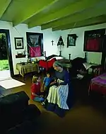 L'ameublement de la maison reflète le mélange des cultures canadienne-française et amérindienne des Métis. L'une des plus grandes influences amérindiennes est la présence d'un hamac utilisé comme berceau. Ce dernier est renforcé par une ceinture fléchée qui faisait partie de l'habillement des hommes. Le rangement n'est assuré que par une seule armoire, les effets personnels étant rangés dans des coffres. Les murs sont ornés de portraits de famille ainsi que de portraits de la Sainte Famille, du pape Pie IX et du Mgr Ignace Bourget[2].