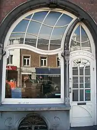 L'originalité de cette construction réside dans la particularité de ses deux vitrines. Celles-ci sont constituées d'un arc en plein-cintre incluant à la fois la vitrine et la porte du magasin. On remarquera notamment la partie supérieure de chaque vitrine, inclinée vers la droite et divisée par des petits bois tout en ondulation.