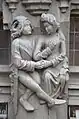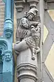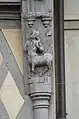 - une sculpture soutient sa tourelle d'angle, représentant un « arbre de vie » autour duquel il y aurait eu autrefois les personnages d'Adam et Ève ;