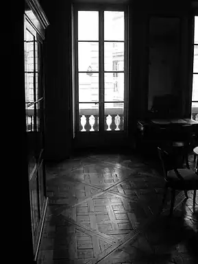 - Le salon : Dans le salon, un portrait de Clotilde de Vaux réalisé par le peintre Etex, a été suspendu juste au-dessus du fauteuil en bois d’acajou sur lequel elle s’asseyait lors de sa visite hebdomadaire. Disciples et successeurs n’ont pas voulu toucher à cet objet devenu sacré. Dans ce salon, du temps d’Auguste Comte et Pierre Laffitte eurent lieu, en outre, les sacrements de la Religion de l’Humanité : baptême, mariage, initiation, présentation...