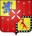 Écartelé, au I et IV, de gueules à trois fasce ondées d'or ; aux II et III, cousu de gueules à trois jumelles d'argent ; sur-le-tout, contre-écartelé : au 1, d'or, au lion d'azur, armé et lampassé de gueules (Gramont) ; au 2, de gueules, à trois flèches d'or, armées et empennées d'argent, 2 et 1, les pointes en bas (Aster); au 3, d'or, à un lévrier de gueules, colleté d'azur, à l'orle de sable, semée de besants d'or (Aure) ; au 4, d'argent à un chef endenté d'azur.[6] |
