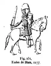 Une seconde maison de Ham apparut de manière certaine au début du XIIe siècle en la personne d'Eudes, seigneur du Ham cité en 1106 et en 1144[4]. L'origine d'Eudes n'est pas connue, mais une hypothèse propose une origine vermandoisenne. L'onomastique et le fait que le Ham était possession des comtes de Vermandois appuient cette prétention, qui ne fait cependant pas l'unanimité. Eudes II serait fils de Simon, probablement seigneur de Ham, lui-même fils cadet d'Eudes ou Otton, comte de Vermandois et seigneur de Ham.
