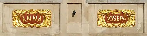 La « Maison de Joseph et Anne », édifiée en pierre de taille, présente une façade de quatre travées[1] et de trois niveaux plus un entresol (demi-étage), surmontée d'un pignon baroque. Sa silhouette imposante semble écraser sa minuscule voisine, la Maison du Cerf.