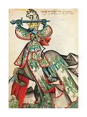 Combattant pour l'empereur Charles Quint à Pavie le 24 février 1525. Le roi de France François Ier, encerclé, se rend et remet son épée au comte Charles de Lannoy.