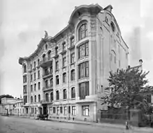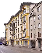 La surface totale du bâtiment est de 6.600 mètres carrés[32]. C'est une construction destinée à être donnée en location à des bourgeois aisés. À l'origine, elle comprenait quatre appartements à chaque étage : deux donnant vers l'avant et deux vers l'arrière. Conçus par la société de commerce et de construction de Moscou, cet immeuble d'habitation devait attirer une clientèle non seulement par l'allure élégante de sa façade, mais aussi par l'aspect somptueux des décorations à l'intérieur des appartements. Les plus prestigieux étaient ceux situés au premier étage en façade. Ils disposaient de plusieurs cheminées, de décorations de majolique multicolores avec pour chaque appartement un dessin particulier, des stucs aux plafonds et des balcons à la française. Plusieurs escaliers de service permettaient un accès séparé pour le personnel de maison. Les autres appartements étaient conçus de manière plus sobre[33].