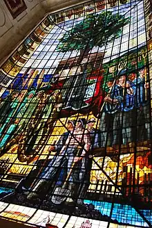 Ce vitrail occupe une surface de 235 m2. et a été réalisé par l'entreprise de Bilbao Vidrieras de Arte S.A.