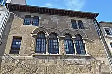 Le premier étage, étage noble, présente deux grandes baies géminées accolées couvertes en arcs légèrement brisés. La petite fenêtre à gauche de la façade est un ajout ultérieur. L’étage supérieur possède deux fenêtres géminées plus simples, à linteaux droits.