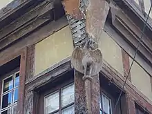 La maison est construite en pans de bois et encorbellement[3] selon le style gothique[3]. Décharges et guêtres, dans les étages, raidissent l'ossature[3]. De petites fenêtres accolées, qu'encadrent potelets et écharpes[3], s'ouvrent sur la façade[3].