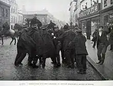 Pour briser la grève qui fait tache d'huile, atteignant Paris : L'Écho de Paris titre « Vers la révolution ». À l'approche du , Clemenceau avertit Victor Griffuelhes, secrétaire général de la CGT, qu'il sera tenu responsable pour tout débordement, et fait arrêter préventivement plusieurs militants d'extrême-droite, « laissant entendre la préparation d'un complot »[3]. Il fait aussi venir 45 000 soldats à Paris[3] : la « fête du Travail », sous haute surveillance policière, se déroule dans le respect de l'ordre et de la propriété[3]. En , une joute l'oppose à Jaurès à la Chambre pendant six jours[3].