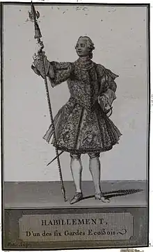 - le corps de la Gendarmerie d'ordonnance en 1660. Mais ce corps a subi de nombreuses modifications. Il regroupait des compagnies de gendarmes et de chevau-légers. Les gendarmes écossais avaient été placés à la tête du corps.