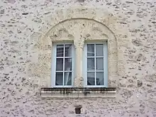 Le pignon occidental est percé, à l'étage, d'une baie géminée dont le meneau supporte un chapiteau à décor végétal. Les linteaux de chacune des deux fenêtres ainsi constituées sont décorés d'une arcature trilobée[6].