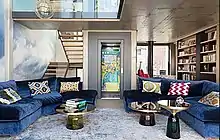 Alexandra Selig et Carl Renault proposent alors de structurer la maison comme un arbre entre ciel terre, dont la cage d’ascenseur centrale serait le tronc et dont chaque plateau serait comme une branche accueillant un nid douillet adapté à chaque fonction de la maisonnée[1]. Les matériaux décoratifs sont riches (velours, boiseries, tapis, panneau doré) et s’opposent à la radicalité des matériaux de construction (acier, béton, verre).