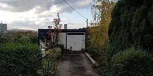 Le bâtiment est tourné de manière que seulement une petite façade soit visible depuis la rue et ne dévoile que très peu aux visiteurs ; une porte de garage et une fenêtre. On accède à la maison de manière latérale. Il faut descendre quelques marches pour arriver à la porte d'entrée. L'escalier se trouve sur la droite et l'on peut rejoindre l'étage de vie du rez-de-chaussée en montant et déboucher dans le séjour. Celui-ci est terminé par un balcon donnant une vue imprenable sur la vallée. Un couloir sur la gauche dessert les chambres, la salle de bains ainsi que le garage. Au sous-sol, sur la gauche de la porte d'entrée se trouvent l'atelier, le bureau et les locaux techniques. Depuis le pas de la porte d'entrée, quelques marches descendent vers le jardin.