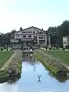 Edmond Rostand découvrit Cambo-les-Bains en 1900 et, conquis par le climat du Pays basque, y fit construire la Villa Arnaga de 1903 à 1906, en confiant le projet à l’architecte parisien Joseph-Albert Tournaire, grand prix de Rome[42]. L’auteur de Cyrano de Bergerac[43] fit appel à des artistes de renom pour décorer les pièces qu’il dessina lui-même. Les jardins, avec leurs pièces d’eau, la pergola et l’orangerie, constituent un ensemble unique au Pays basque. La villa et son parc, aujourd’hui propriété de la commune, abritent le musée Edmond Rostand, rassemblant de nombreux souvenirs de l’écrivain[44].